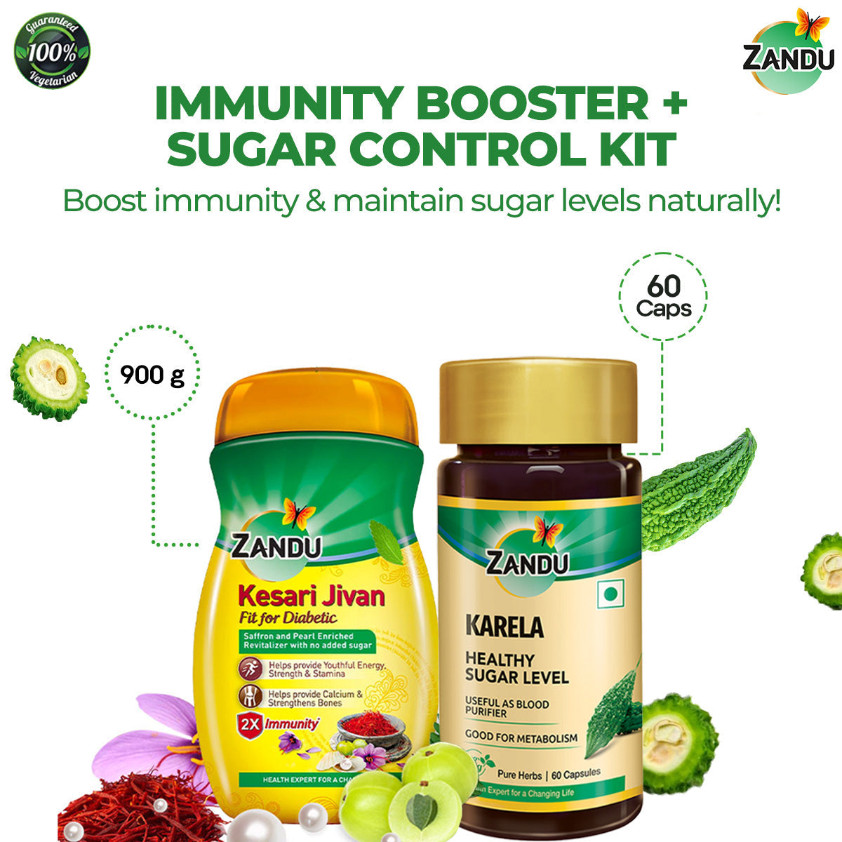 Kesari Jivan FFD (900g) + Karela Capsule (60 Caps)