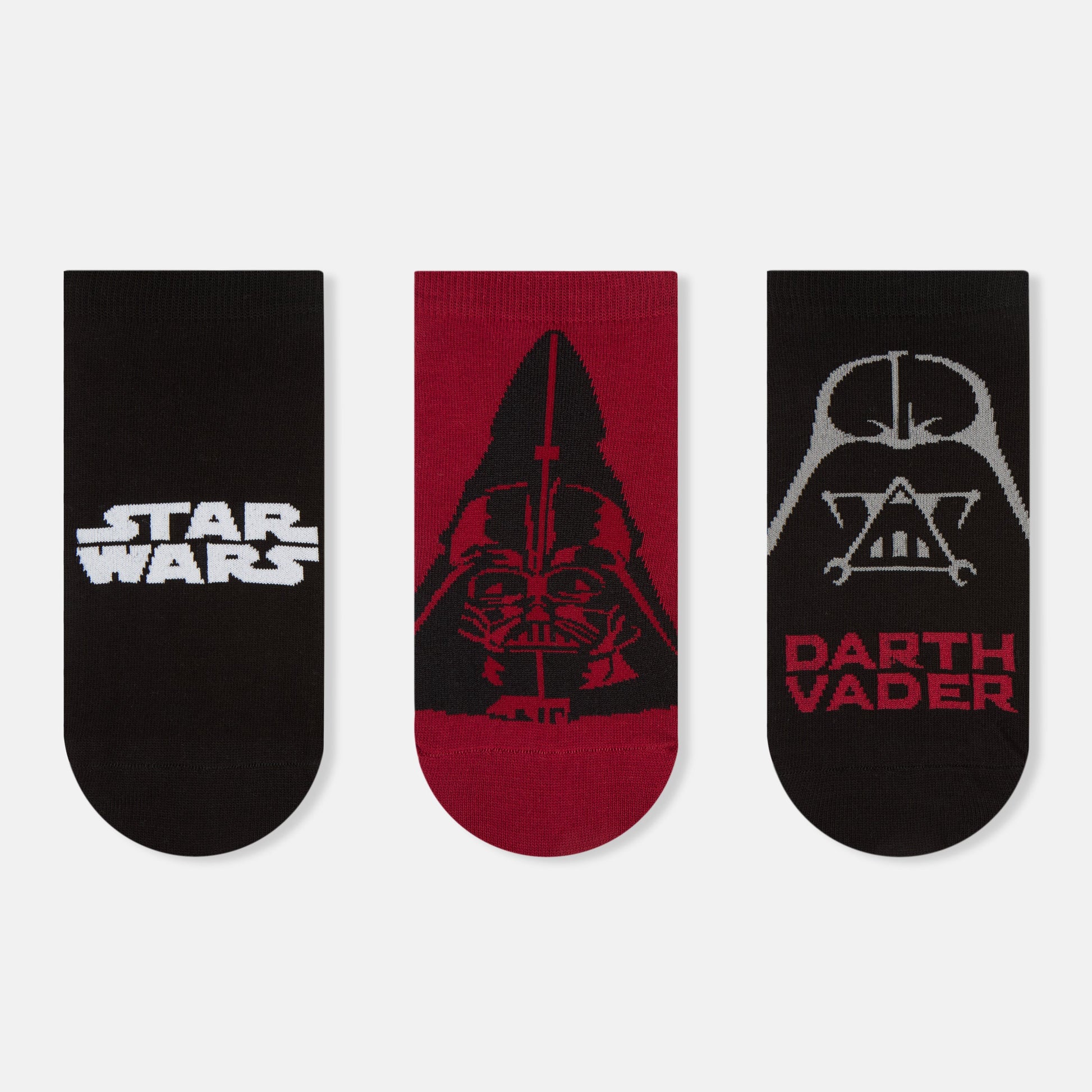 Made using a combination of combed cotton, nylon, spandex and elastic, these ankle socks ensure utmost comfort, stretchability, durability and grip. They feature the iconic logo and the unforgettable - Darth Vader.