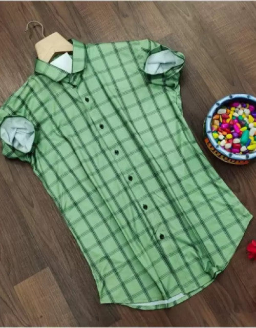 Men Slim Fit Checkered Ribbed Collar Casual Shirt