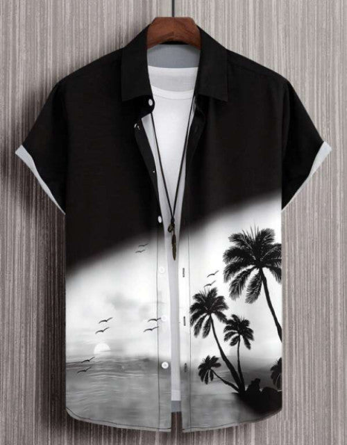 Men Slim Fit Printed Cut Away Collar Casual Shirt