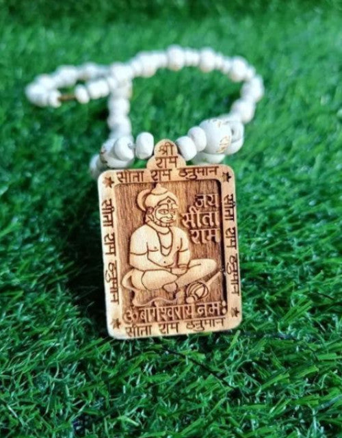 Original & Natural Wood Tulsi Kanthi Mala With Hanuman ji Locket Pendant