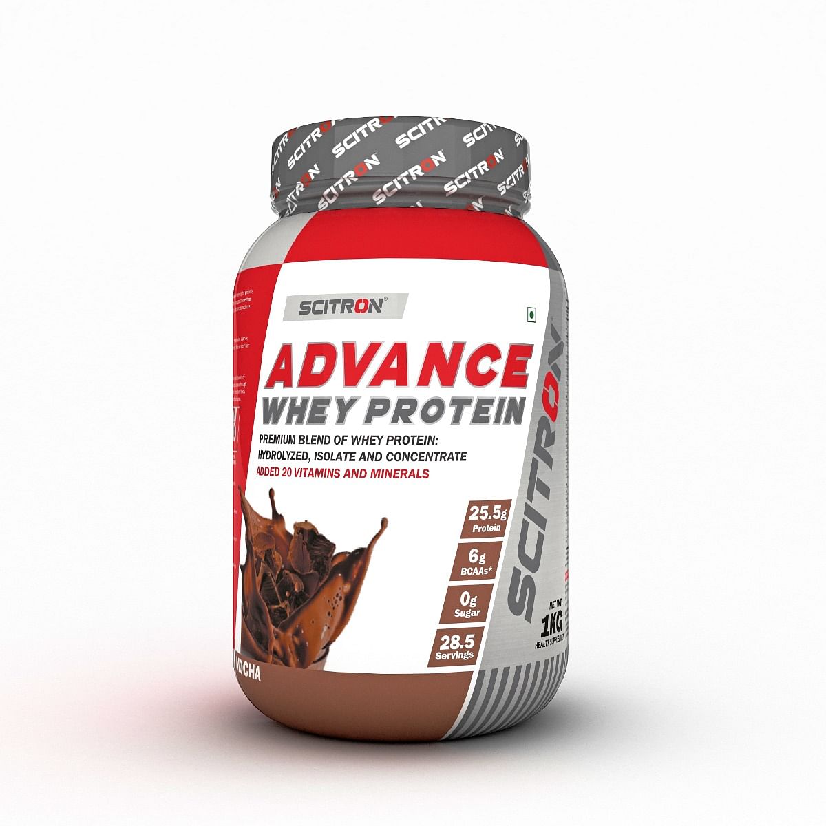 Scitron Advance Whey Protein 1Kg Mocha (28.5 Servings, 25.5g Protein, 5g BCAAs, 0g Sugar, 20 Vitamins & Minerals) Certified by Labdoor,USA | Sourced from Glanbia Nutrition | Certified by Informed Choice
