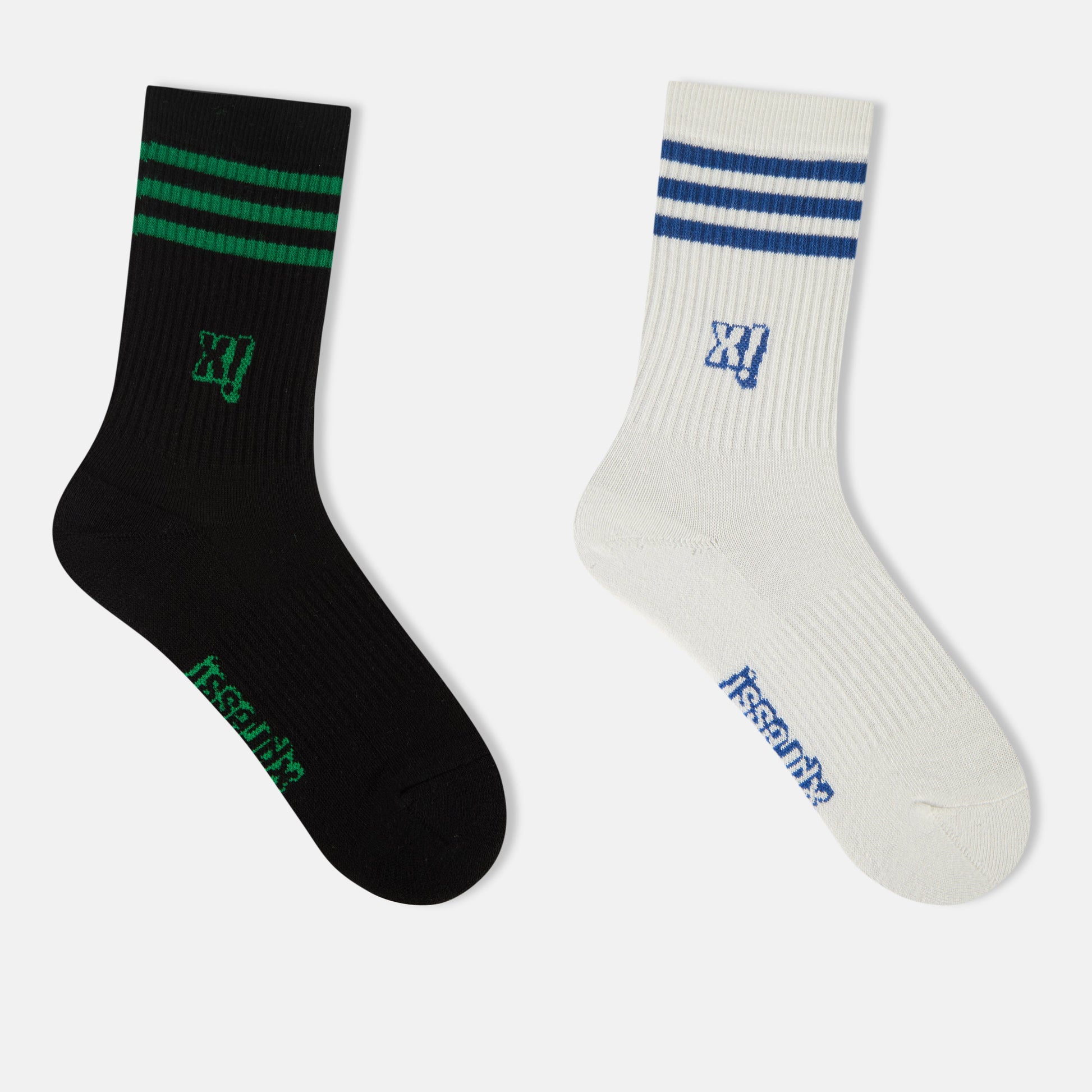 Crew Socks for Women, designed to bring effortless style and everyday comfort. This pack features two classic pairs—one in bold black with green stripes and one in crisp white with blue stripes—crafted to match your every mood and outfit. Made from a soft, breathable cotton blend, these socks offer a snug fit, all-day freshness, and easy stretchability. Whether you're hitting the streets, relaxing at home, or making moves at work, these crew-length socks deliver timeless style, a sporty edge, and dependable comfort for both casual and active wear. |