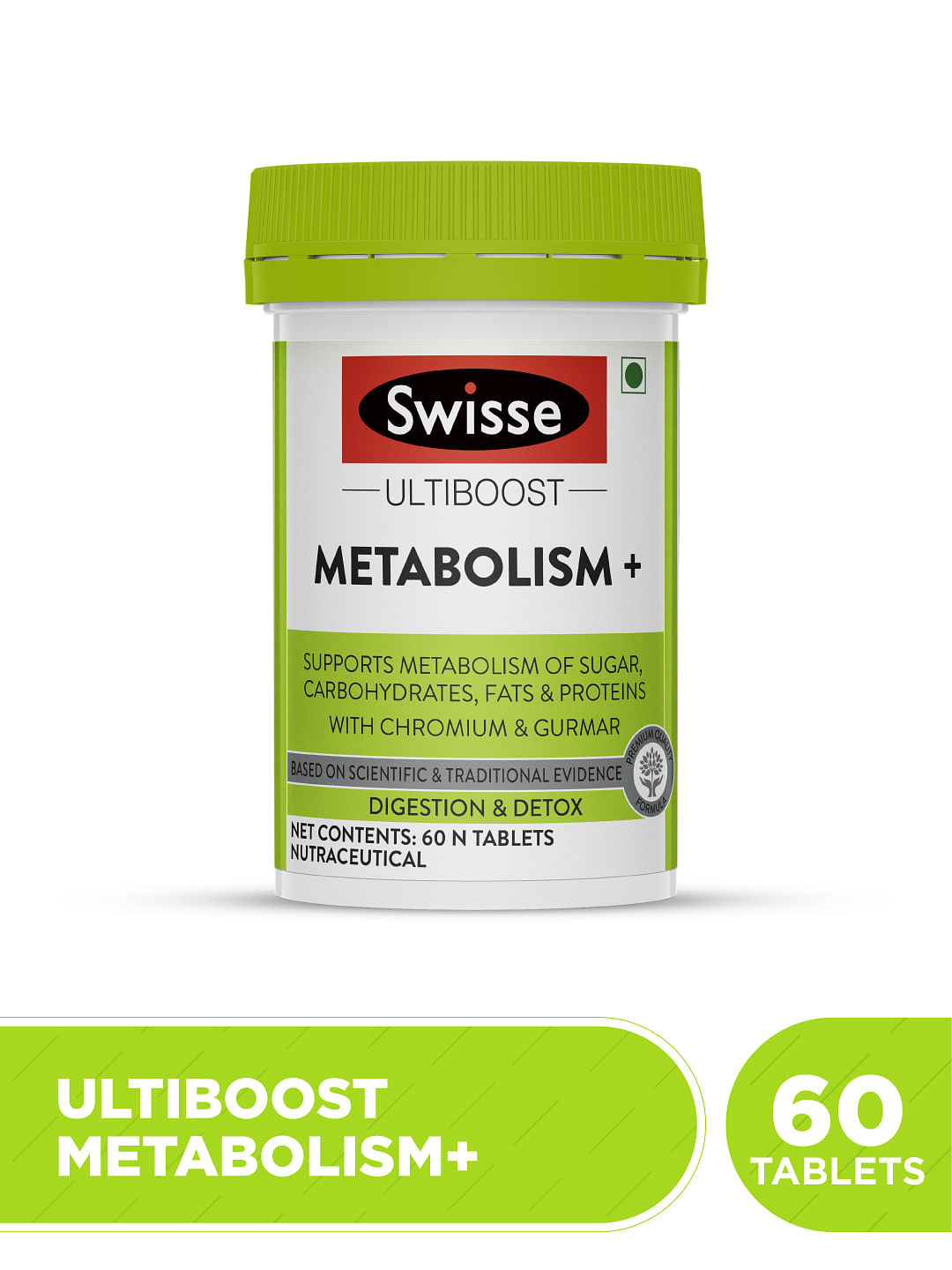 Swisse Ultiboost Metabolism+ , Supports Metabolism Of Sugar, Carbohydrates, Fats & Proteins, Chromium & Gurmar For Digestion & Detox - 60 Tablets