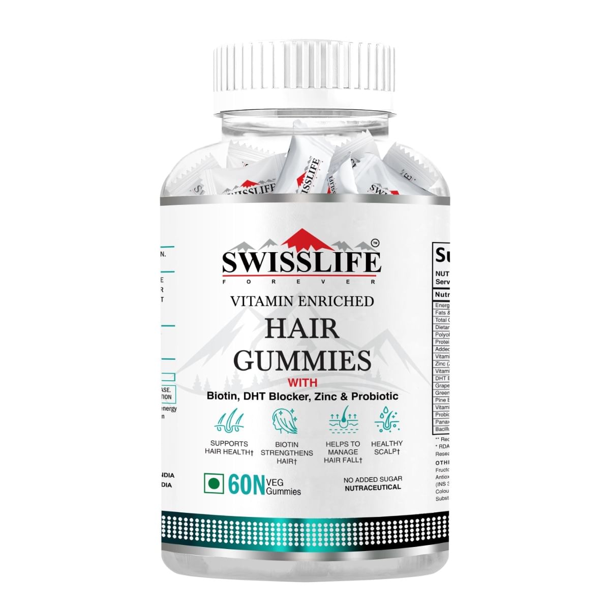 SWISSLIFE FOREVER Hair Gummies | Vitamin enriched Hair Gummies | Gummy with Biotin, DHT Blocker, Zinc & Probiotics Help in Hair Health, Scalp Health, and Helps to manage Hair Fall | For Men & Women