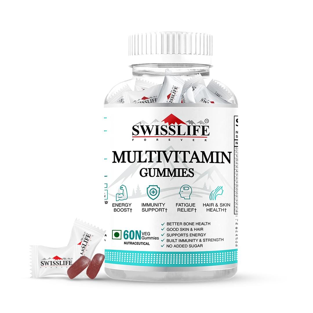SWISSLIFE FOREVER Multivitamin Gummies| Folic acid with Vit. C | Micronutrients Vit. C,A,D,E, Vit. B6,B9,B12| Sugar-free| Supports Immunity and Health