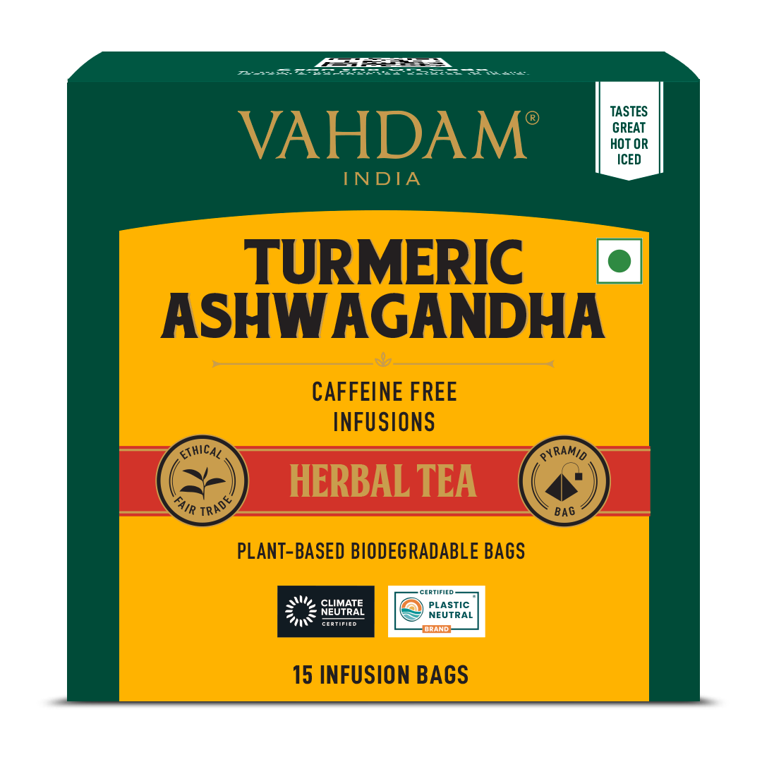 Experience high quality Ashwagandha with bountiful turmeric and refreshing lemongrass. A caffeine-free delight for a good night's sleep.