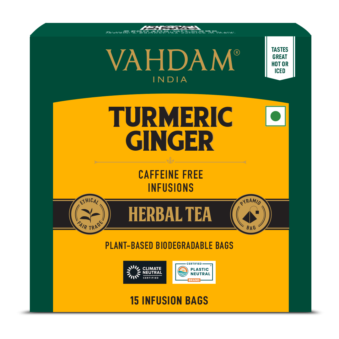 A timeless Indian combination of pure golden turmeric chunks and zesty ginger, offering a warm and invigorating herbal tea experience.