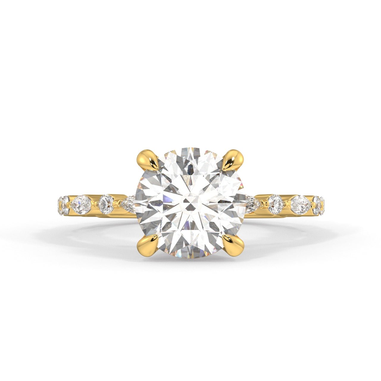 "Twilight Sparkle" ring features a dazzling round diamond solitaire with delicate accents, exuding elegance and charm. This ring is the epitome of perfection as a gift for your beloved, symbolizing love and devotion. Its timeless design allows for seamless stacking with other rings, enhancing its beauty and versatility. With its alluring sparkle and classic appeal, the "Twilight Sparkle" ring is a match made in heaven for your lady love, ensuring a look of unmatched sophistication and grace.