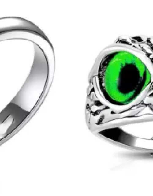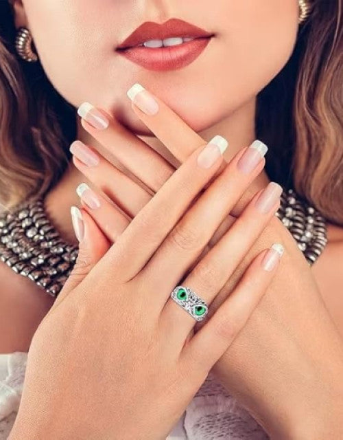 Valentine Stylish Silver Hug Ring and Lucky Owl Eye Ring Green Eye Latest Trendy Stainless Steel Couple Ring