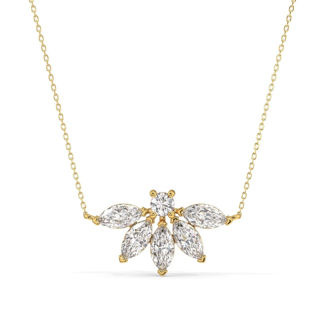 Introducing the Winks Necklace, a delightful piece resembling a playful winking eyelash. The pendant features 5 sparkling marquise diamonds, adding a touch of elegance and charm. This necklace is the perfect gift for the special lady in your life, symbolizing flirtatious beauty and grace. With its whimsical design and sparkling allure, the Winks Necklace captures attention and admiration. Embrace the unique and enchanting beauty of this necklace, a symbol of affection and style. Make a statement with the Winks Necklace, a stunning accessory that speaks volumes of love and appreciation.