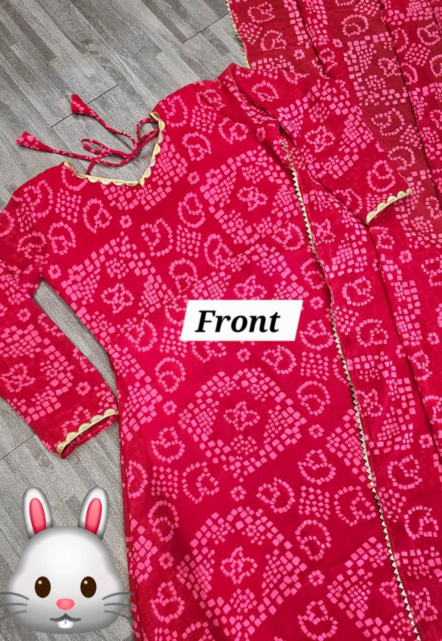 Women'S Red Bandhani Styles Gown